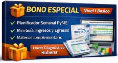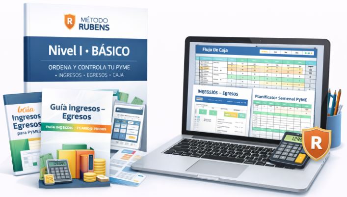 El Método Rubens para PyMEs te enseña, paso a paso, cómo ordenar tu dinero, planificar tu caja y recuperar el control financiero de tu negocio, aunque hoy no tengas tiempo, equipo administrativo ni seas experto en Excel.