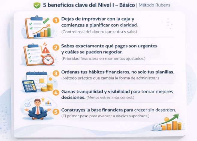 El Método Rubens Nivel I Básico es un sistema práctico de control financiero para PyMEs, creado a partir de años de asesoría real a empresas, no desde la teoría académica.